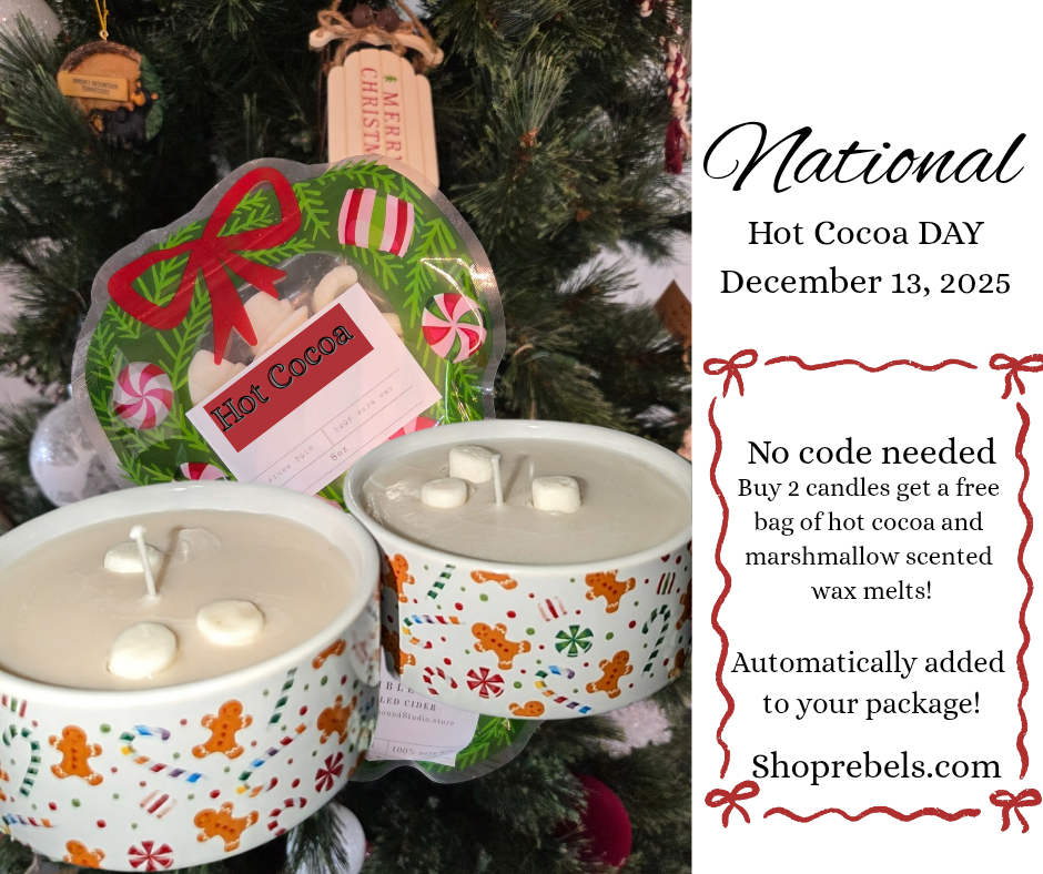 Buy any TWO candles and receive a FREE Hot Cocoa–inspired gift, automatically added to your order — no code needed.